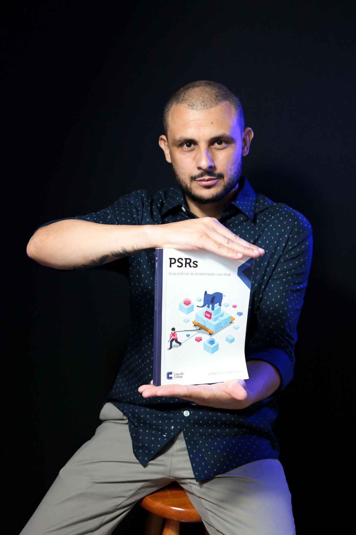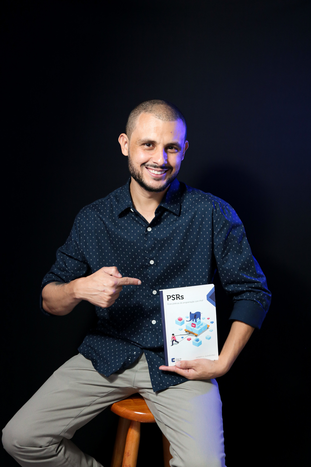 Ensaio profissional com o engenheiro de software e escritor Jhones dos Santos, apresentando também seus livros de programação em PHP e criação de APIs.