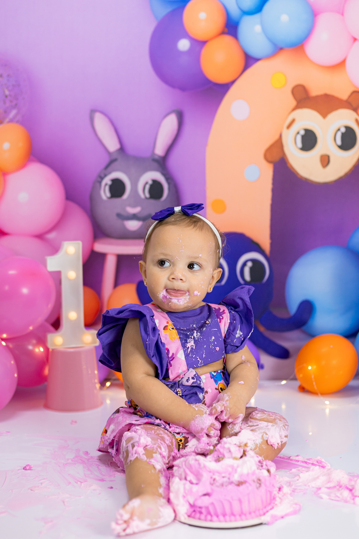 Com muita alegria, a pequena Alice comemorou seu 1º aninho em um ensaio cheio de diversão! Teve muita bagunça, bolo por toda parte e um banho delicioso para fechar com chave de ouro. Cada clique registrou a doçura e a energia desse momento tão especial.